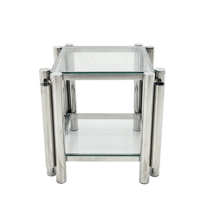 20 Inch Square End Table, Modern Stainless Steel End Table, Double-Layer Clear Tempered Glass Coffee Table, Side Table With Storage, For Living Room HThis coffee table features a glass tabletop and irregular cylindrical stainless steel tube legs, showcasing a unique design. The smooth lines and sleek glass surfaces add a touch of industrial chic to your home. Everly Quinn Table Base Color: SilverEverly Quinn