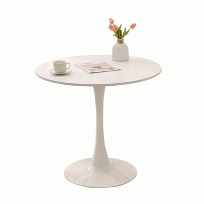 31.5" Round Dining Table, Mid-Century Table, Metal Base Pedestal Table For 2-4 Person,Easy Assembled Leisure Coffee TableApplication: Home Office, Living Room, Bedroom, Dining, Hotel, Apartment, Office Building, School, Mall, Leisure Facilities, Supermarket, Warehouse, Workshop, Park, Other George Oliver Color: WhiteGeorge Oliver