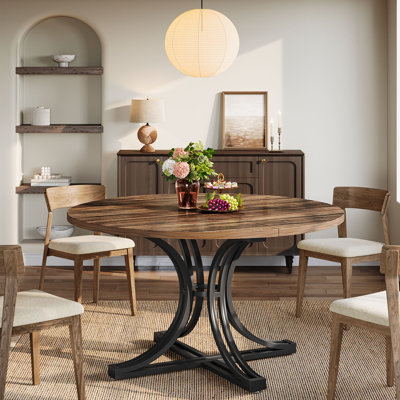 Round Dining Table, 46.5-Inch Dining Room Table for 4-6 People, Farmhouse Kitchen Table with Metal Base, Wood Circle Dinner Table for Living Room, KitIdeal round dining table for your room together with 4-6 people! With a simple & modern style, This large round dining table is an exquisite piece of furniture in your place. Upgrade your home with this dinner table. This distinctive dining table features a unique design with rounded edges for a welcoming feel and addiEbern Designs