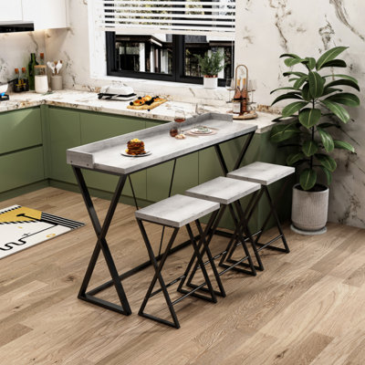 Modern Design Kitchen Dining Table, Pub Table With X-Shaped Table Legs, Long Dining Table Set With 3 Stools, Easy Assemble,Elevate Your Dining Space: Transform your kitchen or dining area with this modern design kitchen dining table set. The sleek and stylish long dining table, accompanied by three matching bar stools, adds a touch of contemporary elegance to any space, making it the perfect gathering spot for family and friends. 17 Storie17 Stories