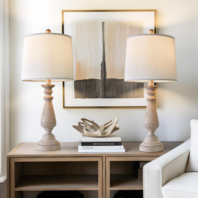 24.5" Mid Century Table Lamp Set Of 2 For Living Room Farmhouse Linen Bedside Lamps For Bedroom Kids Room Dorm Office Rustic Lamps For End Table NigntThe perfect combination of Beige Washed resin lamp body and linen lampshade presents a retro and elegant appearance. The classic design adds a touch of classicism to any corner of the house.(Assembly Required) Ophelia & Co.Ophelia & Co.