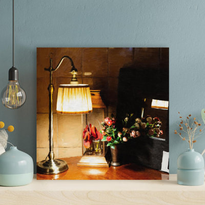 Brass And White Table Lamp On Brown Wooden Table - 1 Piece Rectangle Graphic Art Print On Wrapped CanvasAll pleasure is ours to have your attention on our finest canvas! This product is one of the indispensable items to highlight your room with impression and luxury. Also, it is such an excellent idea to make it a gift to your dearest ones! Red Barrel Studio Size: 32" H x 32" W x 2" DRed Barrel Studio