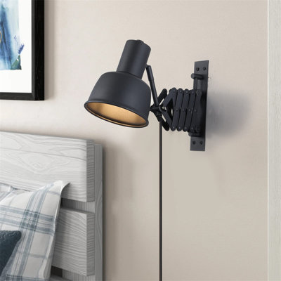 Bedroom Bedside Industrial Plug-In Wall Lamp Retro Extended Swing Arm Wall Lamp,This scissor-swing arm wall light fixture creates an ideal modern industrial wall light for any room. This wall light is made of 100% iron with a matte black finish. It comes with all the elements you need to create a retro industrial style environment. Latitude RunLatitude Run