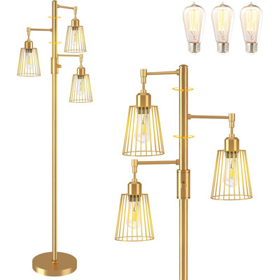 Industrial Floor Lamp, 3 x 1200LM Edison LED Bulbs Included, Bright 3-Light Dimmable Floor LampCompared to traditional non dimmable living room floor lamps, our elegant floor lamps are steplessly dimmable; the unique rotary button allows the tall LED floor lamps to be dimmed from 10% to 100%, making them suitable for a variety of room styles and lighting requirements 17 Stories Base Finish: Gold17 Stories