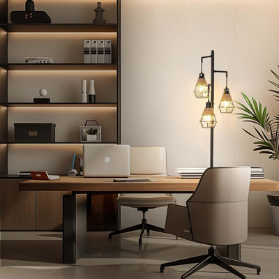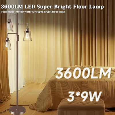 Industrial Floor Lamp, 3 x 1200LM Edison LED Bulbs Included, Bright 3-Light Dimmable Floor LampCompared to traditional non dimmable living room floor lamps, our elegant floor lamps are steplessly dimmable; the unique rotary button allows the tall LED floor lamps to be dimmed from 10% to 100%, making them suitable for a variety of room styles and lighting requirements 17 Stories Base Finish: Brown17 Stories