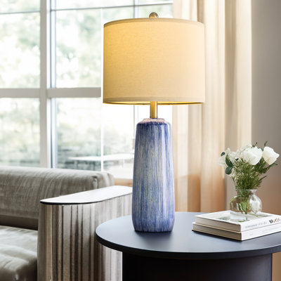 27.75 "modern Blue Coastal Ceramic Lamp,bedroom,home Office,bedside Farmhouse LampModern minimalist design: The desk lamp features a blue ceramic finish, giving it a fresh and stylish appearance. After surface polishing, it becomes smoother and more delicate, making it easy to clean. The colored glaze on the outline of the blue desk lamp has an artistic atmosphere, bringing one of the hottest trendsEbern Designs