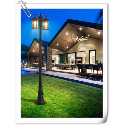 Retro Double Head Outdoor Post Light Dusk To Dawn Post Lamp With Outlet IP65 Waterproof Street Light Fixture 2 Light Outdoor Lamp Post Lights Pole MouOutdoor Patio Black Post Light, 7.1ft x 1.8ft, Weather Resistant Aluminum, E26/Medium Base 60W Bulbs Not Included Red Barrel StudioRed Barrel Studio