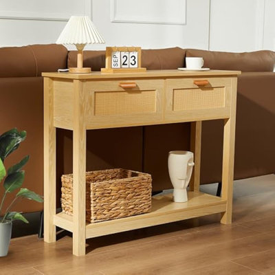 Rattan Console Table With Drawers, Boho Entryway Table With Storage, Narrow Long Sofa Table With Open Shelf, Foyer Table Hallway Table Behind Couch TaBoho Rattan Console TableCrafted from rattan and premium wood, our console table blends smooth natural wood tones with rattan drawer panels, presenting a minimalist yet captivating design. Infusing elegance and modernity into your space, it seamlessly integrates with any decor style, elevating the perfection of your roBay Isle Home