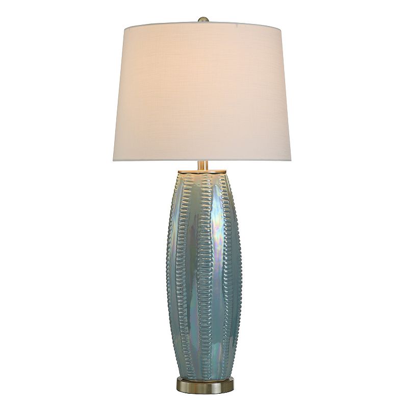 Metallic Silver Table Lamp with White Lamp Shade, Blue LusterThe perfect accent piece for any home, this Metallic Silver Table Lamp with White Lamp Shade adds the perfect touch to your space.Click this HOME DECOR & FURNITURE GUIDE to find the perfect fit and more! The perfect accent piece for any home, this Metallic Silver Table Lamp with White Lamp Shade adds the perfect touchUnbranded