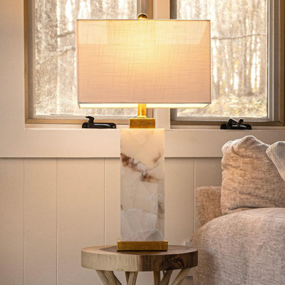 Decorian Metal Table Lamp LampThe Ohara Table Lamp features two curved sculptural blocks that come together to create a dynamic and bold two-tone base made from black metal and white marble. A white linen rectangular shade completes the look. Brayden StudioBrayden Studio