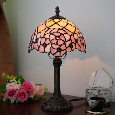 Lamp Stained Glass Table Lamp ,Desk Reading Light Decor Beside Bedroom Living Room Home,Cherry BlossomDelicate glass petals form a blooming flower in this Cherry Blossom Table Lamp, which emits a soft pink glow. It's the perfect size at 8 inches (20cm) wide by 14 inches (37.5cm) high, taking up little space while adding a touch of spring to your room. Its resin base has bronze finish for a vintage and elegant look.ThisBloomsbury Market