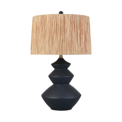 Arnika Earthenware Table Lamp LampThe Lombard Table Lamp has a bold, angular contemporary gourd shape with three stacked triangular bands that get progressively smaller as they go up the body. The lamp is made from matte black painted earthenware contrasted with a hand-woven natural rattan drum shade. Bay Isle HomeBay Isle Home