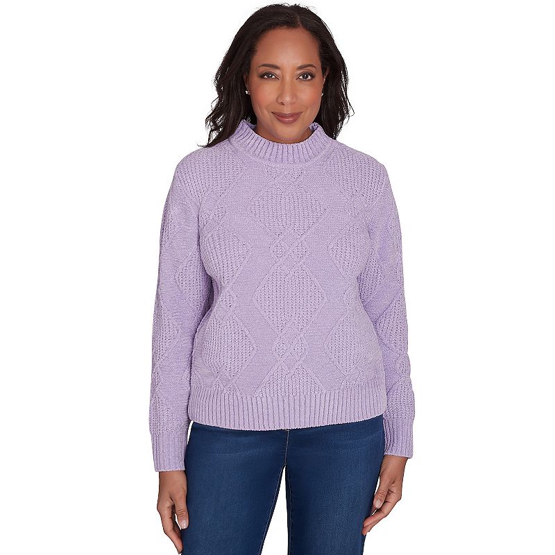 Women's Alfred Dunner Chenille Diamond Turtleneck Sweater, Size: Large, PurpleStay warm and trendy with this effortlessly chic patterned sweater. Highlighting a soft ribbed turtleneck, long sleeves and a straight hemline.Click on this WOMEN'S GUIDE to find the perfect fit and more! Stay warm and trendy with this effortlessly chic patterned sweater. Highlighting a soft ribbed turtleneck, long sleAlfred Dunner