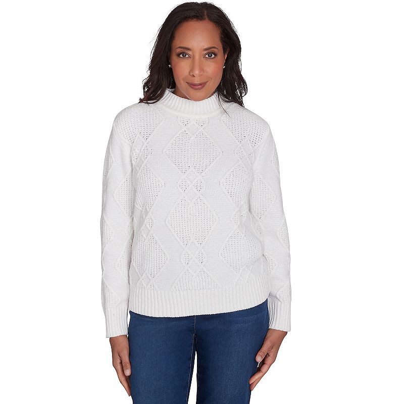 Women's Alfred Dunner Chenille Diamond Turtleneck Sweater, Size: Large, IvoryStay warm and trendy with this effortlessly chic patterned sweater. Highlighting a soft ribbed turtleneck, long sleeves and a straight hemline.Click on this WOMEN'S GUIDE to find the perfect fit and more! Stay warm and trendy with this effortlessly chic patterned sweater. Highlighting a soft ribbed turtleneck, long sleAlfred Dunner