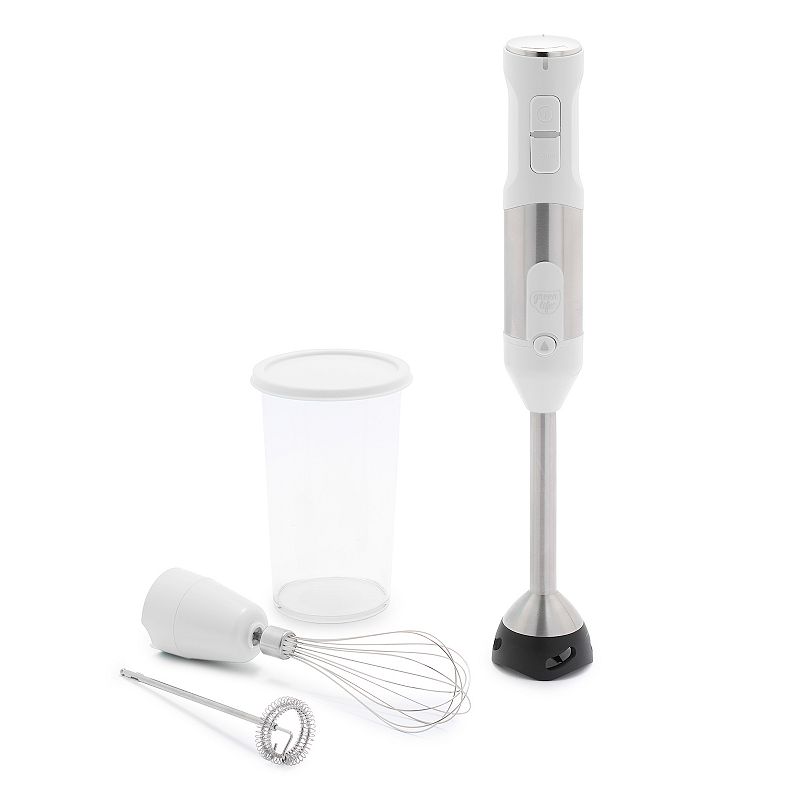GreenLife Variable Speed Hand Blender, WhiteThis hand blender features an ultra-fast 500-watt motor, three versatile attachments, and a beaker with lid for precise measuring. The variable-speed dial gives you total control while the protective blade guard keeps your cookware from getting damaged. FEATURES 3-IN-1 DESIGN: The versatile design lets you easily switcGreenLife