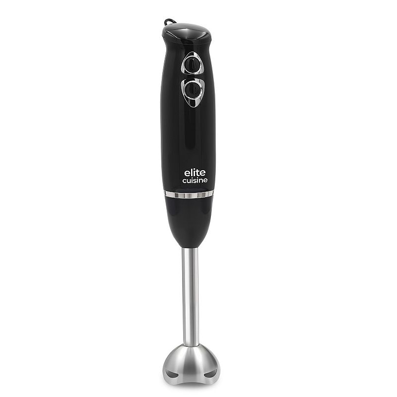 Elite Cuisine 2-speed 500W Hand Blender with Detachable Wand, BlackThe Elite Cuisine 2-speed Hand Blender is a versatile kitchen tool with a powerful motor for blending, whisking, and pureeing with ease.WHAT'S INCLUDED Includes blender motor and blade assemblyCONSTRUCTION & CARE Stainless steel, plastic Dishwasher safe accessories, Wipe cleanDETAILS 14.96"H x 2.56"W x 2.56"L 500 WattsElite