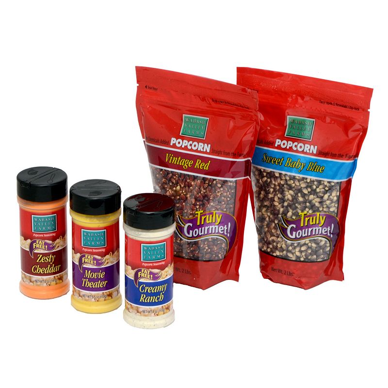 Wabash Valley Farms 5-pc. Gourmet Popping Popcorn Kernels & Classic Seasonings Set, MultiWhen it comes to making delicious popcorn at home, this Wabash Valley Farms popping kernels and seasonings set has you covered.PRODUCT FEATURES Two bags of Midwestern grown kernels deliver tasty results. Three shaker seasoning bottles provide versatility. WHAT'S INCLUDED 2-lb. bag of Vintage Red Gourmet Popping KernelsWabash Valley Farms