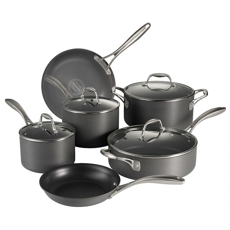 Tramontina Gourmet 10-pc. Hard-Anodized Aluminum Cookware Set, GrayThis Tramontina Gourmet 10-pc. hard-anodized aluminum cookware set is perfect for beginning and advanced chefs alike. With every piece you need to braise, saute, simmer and sear, the possibilities are endless with this cookware set. This Tramontina Gourmet 10-pc. hard-anodized aluminum cookware set is perfect for beginTramontina
