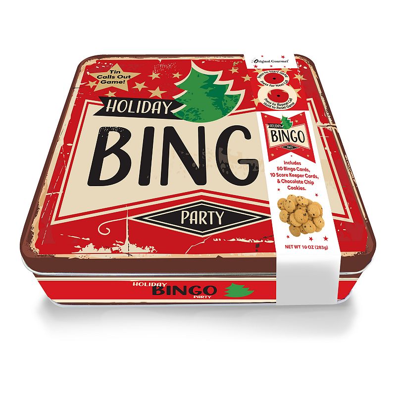 Original Gourmet Bingo Cookie Tin, Multi NoneDelight your loved ones with this Original Gourmet cookie tin filled with delicious treats! Delight your loved ones with this Original Gourmet cookie tin filled with delicious treats! FEATURES Bingo Decorative Cookie Tin Filled with 10-oz. Chocolate Chip Cookies 50 Bingo Cards & 10 Master Cards Collectible and reusableOriginal Gourmet