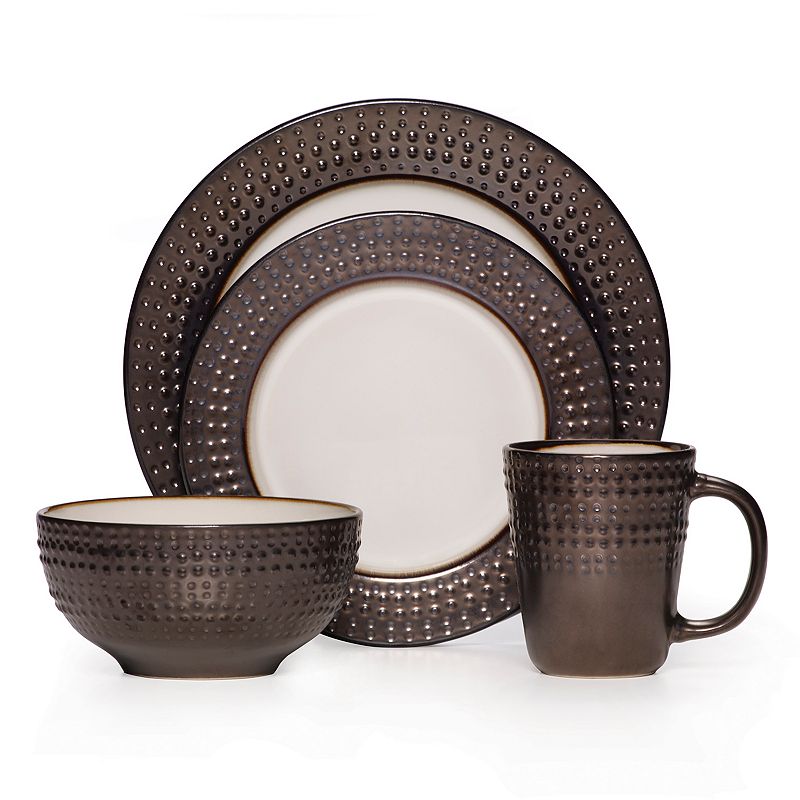 Gourmet Basics Verona 16-pc. Dinnerware Set, BrownSimply stunning. This eye-catching Gourmet Basics dinnerware set is sure to make a lasting impression.PRODUCT FEATURES Speckles and dots create a rich, stylish appeal. Stoneware reactive glaze ensures long-lasting beauty. WHAT'S INCLUDED Four 11-in. dinner plates Four 8.4-in. salad plates Four 7.4-in. soup/cereal bowlsGourmet Basics