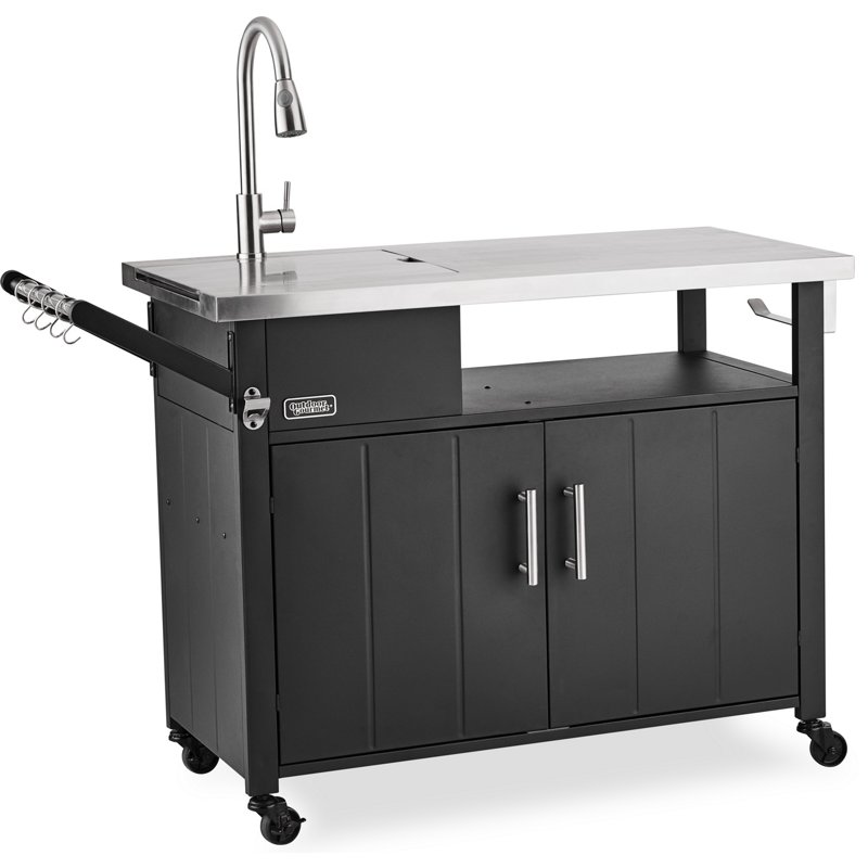 Outdoor Gourmet Outdoor Cooking Prep Station Brown/Silver - Bbq AccessoriesKeep it easy to prep meals on the go with the Outdoor Gourmet Outdoor Cooking Prep Station. This 3-gallon sink features working faucets and counter space to add storage and prep space to your outdoor cooking area. The stainless steel construction offers durability, while the station includes an adjustable trash can braOutdoor Gourmet