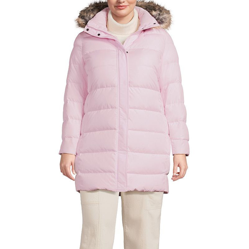 Plus Size Lands' End Faux Fur Hooded Down Puffer Coat, Women's, Size: 2XL, Pink FrostStep out into the elements in confidence and comfort with this sleek Plus Size Lands' End Faux Fur Hooded Down Puffer Coat.Click on this WOMEN'S GUIDE to find the perfect fit and more! Step out into the elements in confidence and comfort with this sleek Plus Size Lands' End Faux Fur Hooded Down Puffer Coat.Click on thiLands' End