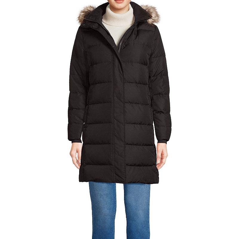 Women's Lands' End Faux-Fur Hood Long Down Winter Coat, Size: Medium, BlackUpgrade your winter wardrobe with this women's Lands' End down long coat, featuring a faux-fur trimmed hood.Finding the perfect fit and size for women's clothing requires basic measurements of your chest, waist, hips and inseam. Use this guide to learn more about sizing and everything Kohl's has to offer in women's fasLands' End