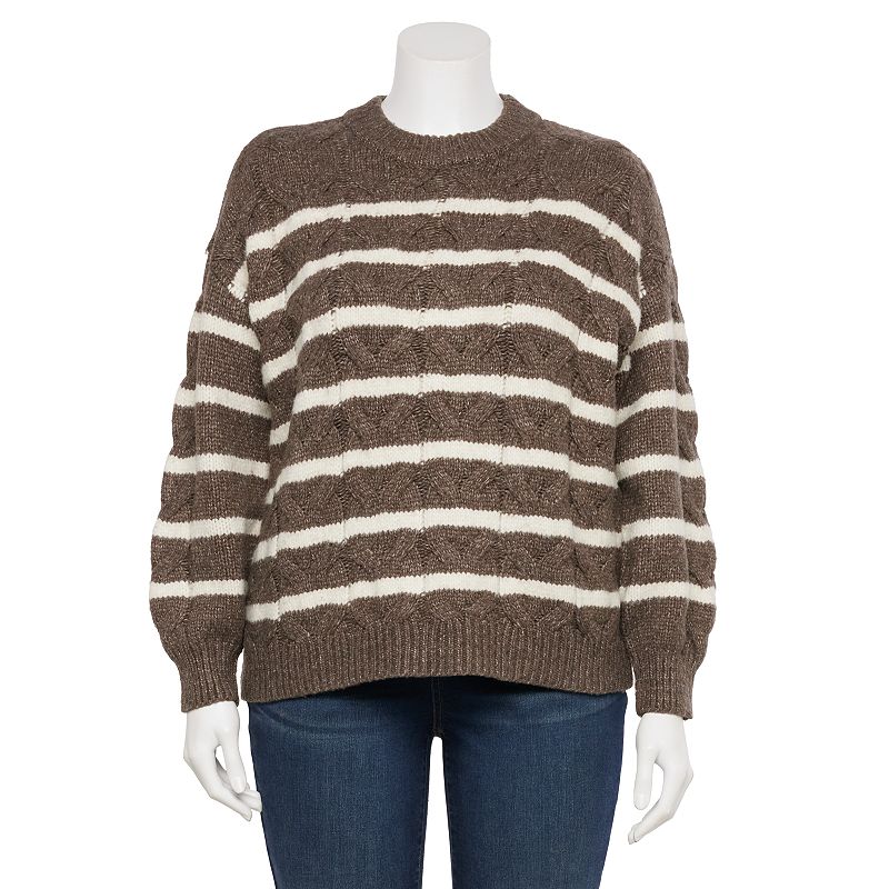 Plus Size LC Lauren Conrad Cable Knit Crewneck Sweater, Women's, Size: 0X, Grey Diana StripeRefresh your wardrobe with this women's plus size LC Lauren Conrad cable knit crewneck sweater. Click on this WOMEN'S GUIDE to find the perfect fit and more! Refresh your wardrobe with this women's plus size LC Lauren Conrad cable knit crewneck sweater. Click on this WOMEN'S GUIDE to find the perfect fit and more! FEATLC Lauren Conrad