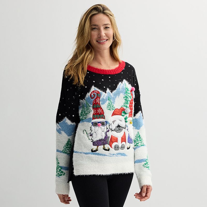 Women's Jollidays Long Sleeve Crewneck Pullover Sweater, Girl's, Size: Large, Black GnomesThis women's warm and festive sweater from Jollidays is prefect to wear to any holiday celebration.Click on this WOMEN'S GUIDE to find the perfect fit and more! This women's warm and festive sweater from Jollidays is prefect to wear to any holiday celebration.Click on this WOMEN'S GUIDE to find the perfect fit and moreJollidays