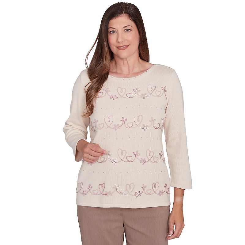 Petite Alfred Dunner Biadere Hearts Crewneck Sweater, Women's, Size: Small Petite, FawnUnlock a new love for cozy fall sweaters with this women's petite biadere hearts woven top from Alfred Dunner.Click on this WOMEN'S GUIDE to find the perfect fit and more! Unlock a new love for cozy fall sweaters with this women's petite biadere hearts woven top from Alfred Dunner.Click on this WOMEN'S GUIDE to find thAlfred Dunner