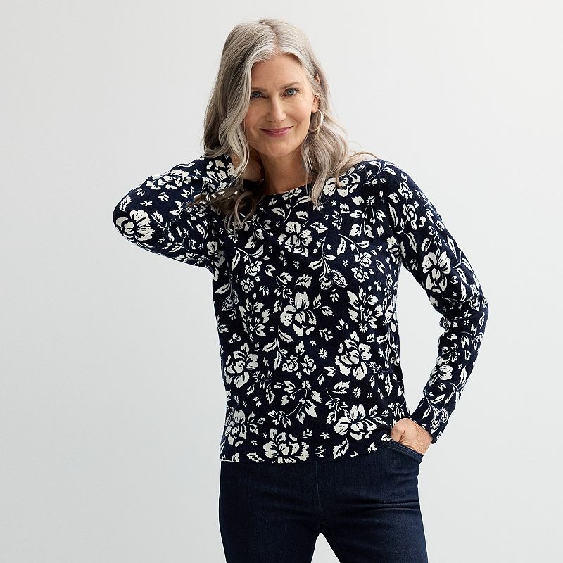 Women's Croft & Barrow Crewneck Printed Pullover Sweater, Size: Large, Blue BloomsEasily add style into your wardrobe with this women's Croft & Barrow crewneck printed pullover sweater.Click on this WOMEN'S GUIDE to find the perfect fit and more! Easily add style into your wardrobe with this women's Croft & Barrow crewneck printed pullover sweater.Click on this WOMEN'S GUIDE to find the perfect fitCroft & Barrow