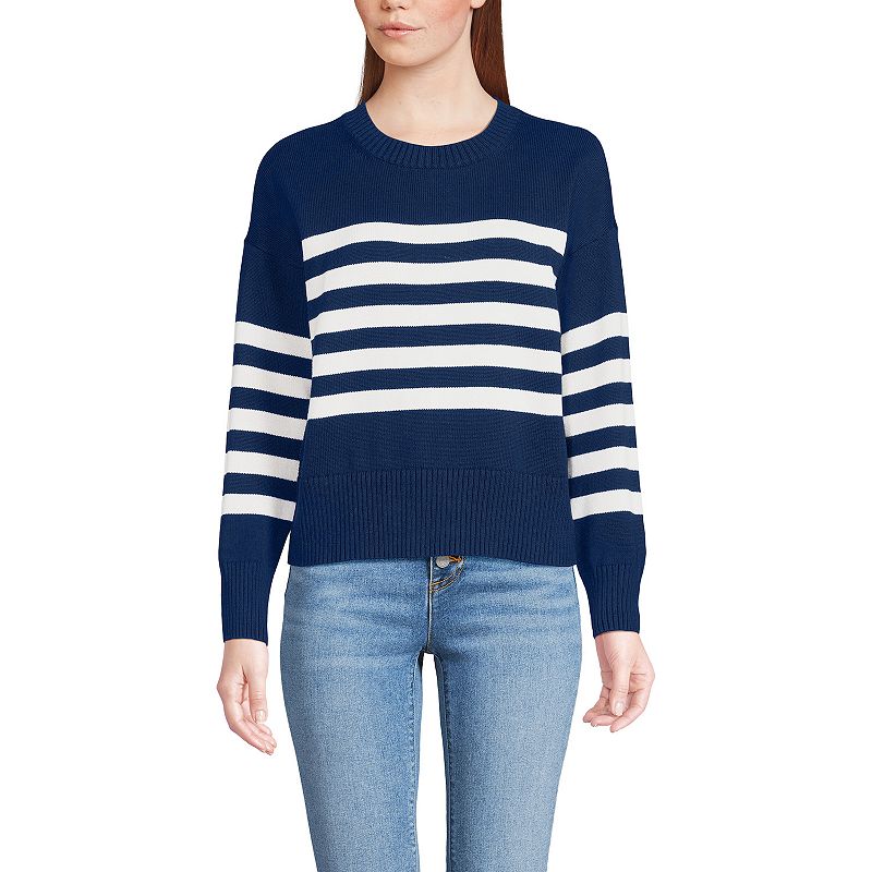 Women's Lands' End Drifter Cotton Easy Fit Crewneck Sweater, Size: Medium, Blue Placed StripeExperience next-level softness and enduring style with this Lands' End Drifter Sweater. It's crafted from ringspun, combed cotton for unmatched comfort, and features mid-weight yarns that maintain their vibrant colors.Click on this WOMEN'S GUIDE to find the perfect fit and more! Experience next-level softness and endurLands' End
