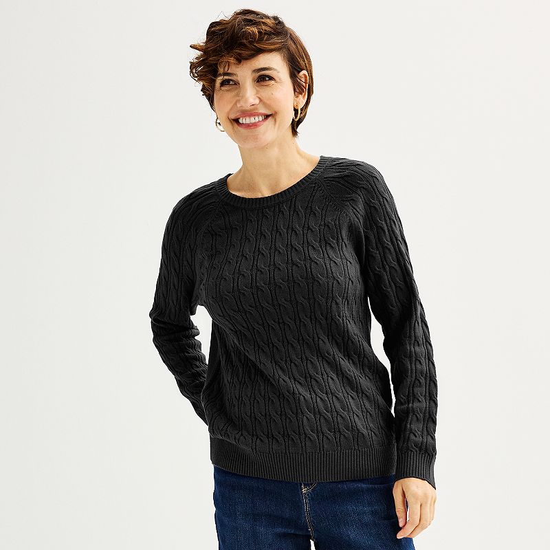 Petite Croft & Barrow The Extra Soft Cabled Crewneck Sweater, Women's, Size: XXL Petite, BlackUpdate your wardrobe with this fashionable women's cabled crewneck sweater from Croft & Barrow.Click on this WOMEN'S GUIDE to find the perfect fit and more! Update your wardrobe with this fashionable women's cabled crewneck sweater from Croft & Barrow. Click on this WOMEN'S GUIDE to find the perfect fit and more! FEATUCroft & Barrow