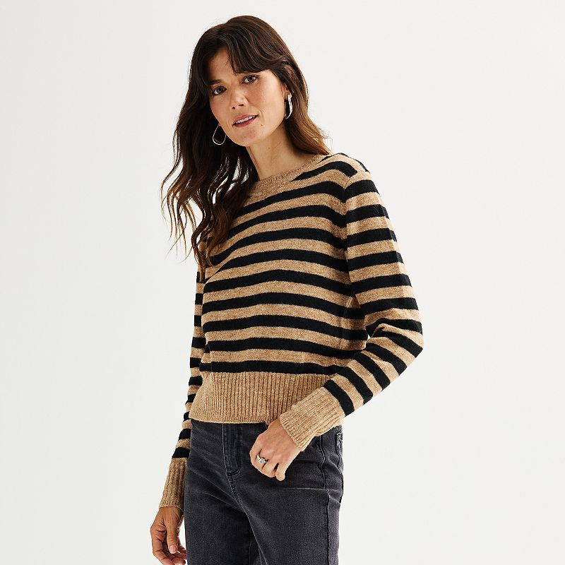 Women's Sonoma Goods For Life Crewneck Sweater, Size: Large, Black Brown StripeRefresh your essentials with this classic crewneck sweater from Sonoma Goods For Life.Click on this WOMEN'S GUIDE to find the perfect fit and more! Refresh your essentials with this classic crewneck sweater from Sonoma Goods For Life.Click on this WOMEN'S GUIDE to find the perfect fit and more! FEATURES Crewneck Long sSonoma Goods For Life