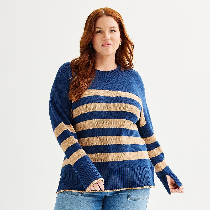 Plus Size Sonoma Goods For Life Side Slit Crewneck Sweater, Women's, Size: 2XL, Navy Beige StripeStay comfy, elegant, and in-style when you wear this Plus Size Sonoma Goods For Life Side Slit Crewneck Sweater. Click on this WOMEN'S GUIDE to find the perfect fit and more! Stay comfy, elegant, and in-style when you wear this Plus Size Sonoma Goods For Life Side Slit Crewneck Sweater. Click on this WOMEN'S GUIDE to fSonoma Goods For Life