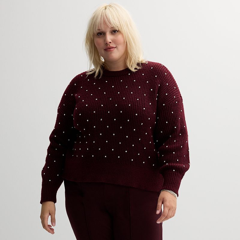 Plus Size Nine West Rhinstone Detailed Crewneck Sweater, Women's, Size: 0X, Maddie PurpleShow up in style with this cozy and cute Plus Size Nine West Rhinstone Detailed Crewneck Sweater.Click on this WOMEN'S GUIDE to find the perfect fit and more! Show up in style with this cozy and cute Plus Size Nine West Rhinstone Detailed Crewneck Sweater.Click on this WOMEN'S GUIDE to find the perfect fit and more! FENine West