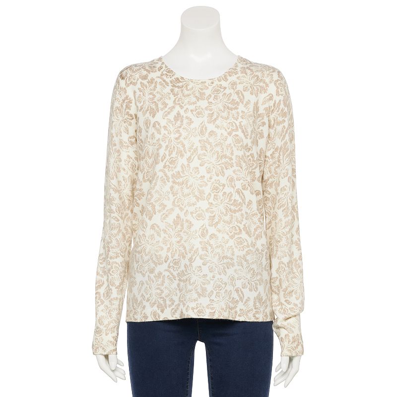 Women's Croft & Barrow Crewneck Printed Pullover Sweater, Size: XS, Ivory DamaskEasily add style into your wardrobe with this women's Croft & Barrow crewneck printed pullover sweater.Click on this WOMEN'S GUIDE to find the perfect fit and more! Easily add style into your wardrobe with this women's Croft & Barrow crewneck printed pullover sweater.Click on this WOMEN'S GUIDE to find the perfect fitCroft & Barrow
