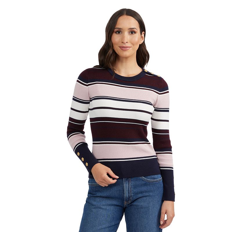 Women's Ellen Tracy Crewneck Button Shoulder Rib Sweater, Size: Small, Red Team StripeThis lightweight crewneck sweater from Ellen Tracy is the perfect layering piece, pairing well with jeans, skirts, blazers and jackets.Click on this WOMEN'S GUIDE to find the perfect fit and more! This lightweight crewneck sweater from Ellen Tracy is the perfect layering piece, pairing well with jeans, skirts, blazersEllen Tracy