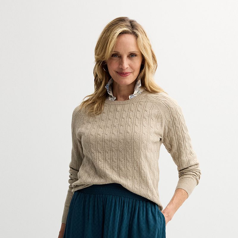 Petite Croft & Barrow The Extra Soft Cabled Crewneck Sweater, Women's, Size: Large Petite, BrownUpdate your wardrobe with this fashionable women's cabled crewneck sweater from Croft & Barrow®.Click on this WOMEN'S GUIDE to find the perfect fit and more! Update your wardrobe with this fashionable women's cabled crewneck sweater from Croft & Barrow®. Click on this WOMEN'S GUIDE to find the perfect fit and more! FEACroft & Barrow