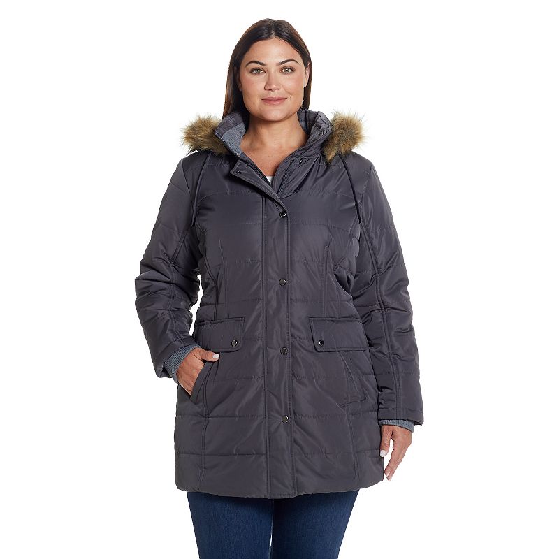 Plus Size TOWER by London Fog Faux-Fur Hood Down Puffer Coat, Women's, Size: 1XL, GreyStay cozy and cute all winter long wearing this women's TOWER by London Fog down-fill puffer coat.PRODUCT FEATURES Water resistant shell Removable hood with faux-fur trim Snap & zipper front Long sleeves with elastic cuffs 2 pocketsFIT & SIZING 36-in. approximate length from shoulder to hem Designed to hit above the knTOWER by London Fog
