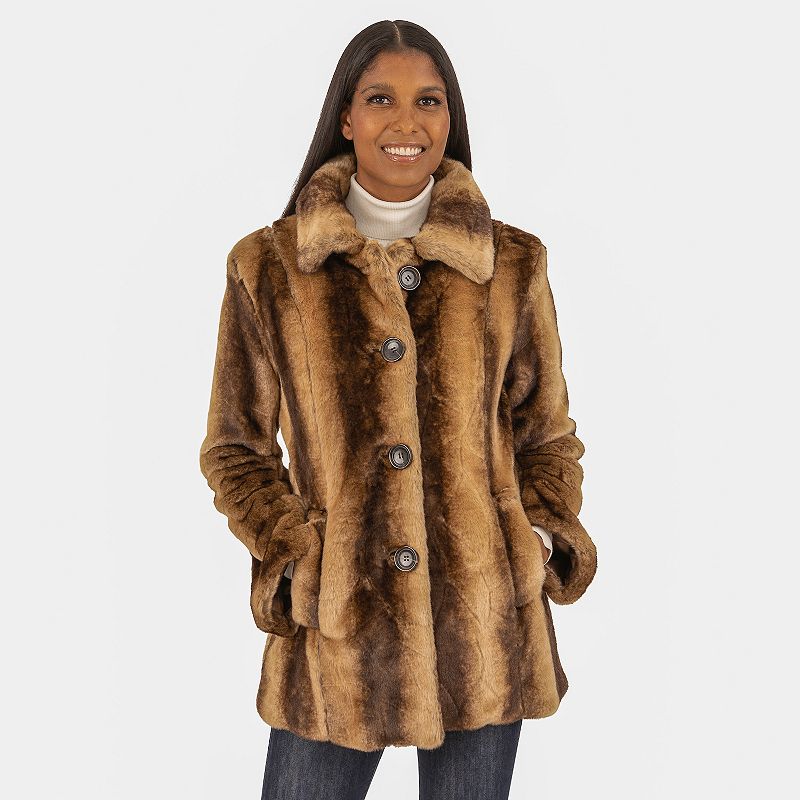 Women's Fleet Street Faux Fur Button Front Swing Coat, Size: Small, BrownGive your style a little bit of warmth with this women's coat from Fleet Street.Click on this WOMEN'S GUIDE to find the perfect fit and more! Give your style a little bit of warmth with this women's coat from Fleet Street.Click on this WOMEN'S GUIDE to find the perfect fit and more! FEATURES Button closure 2 functionalFleet Street
