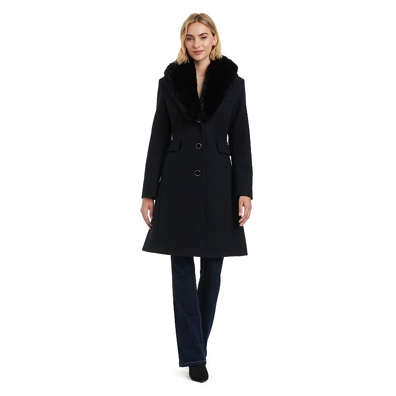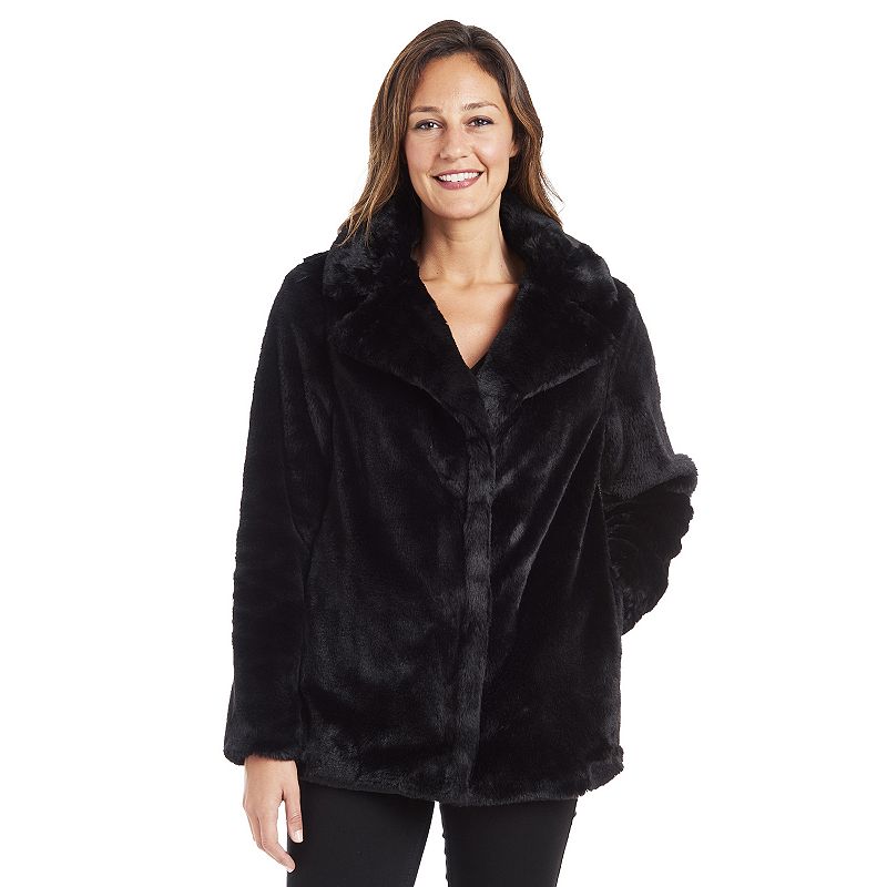 Women's Fleet Street Faux-Fur Notch Collar Coat, Size: Medium, BlackPut some fresh style in your wardrobe with this women's faux-fur notch collar coat from Fleet Street. Put some fresh style in your wardrobe with this women's faux-fur notch collar coat from Fleet Street. Long sleeves Faux-fur fabric construction 2 exterior pockets Oversized lapel and notch collar Front snap closureFITFleet Street