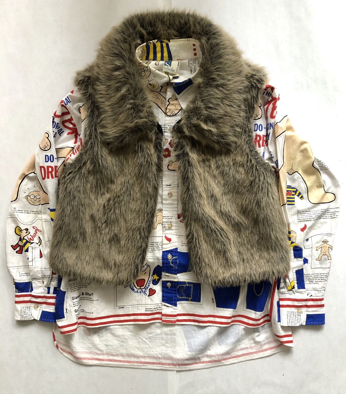 Walter Van Beirendonck 'wild Lethal Trash' Faux Fur Gilet in Beige Fur, Men's (Size Medium)Browns 'wild Lethal Trash' Faux Fur Gilet From Walter Van Beirendonck Pre-Owned Featuring A V-Neck, A Sleeveless Design And An Open Front. Please Be Mindful That This Piece Has Led A Previous Life, And May Tell Its Story Through Minor Imperfection. Kiss The Future Is Cut Out. Walter Van Beirendonck = Small Logo. | WaltWalter Van Beirendonck