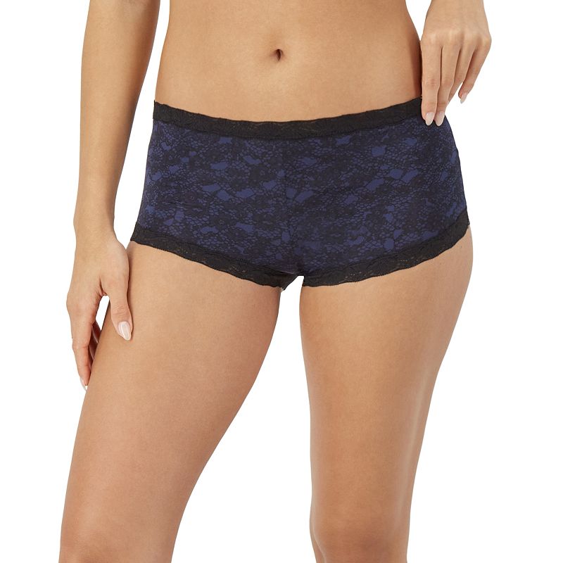 Maidenform One Fab Fit Microfiber Boyshort Underwear with Lace 40760, Women's, Blue Print Blk LaceSoft microfiber fabric blend provides all-day comfort in these Maidenform boyshorts.Made from a soft, microfiber fabric, these women's boxers offer classic boyshort styling with full back coverage. Delicate scalloped lace trim highlights this pretty womens underwear from the boyshort experts at Maidenform. Why look anyMaidenform