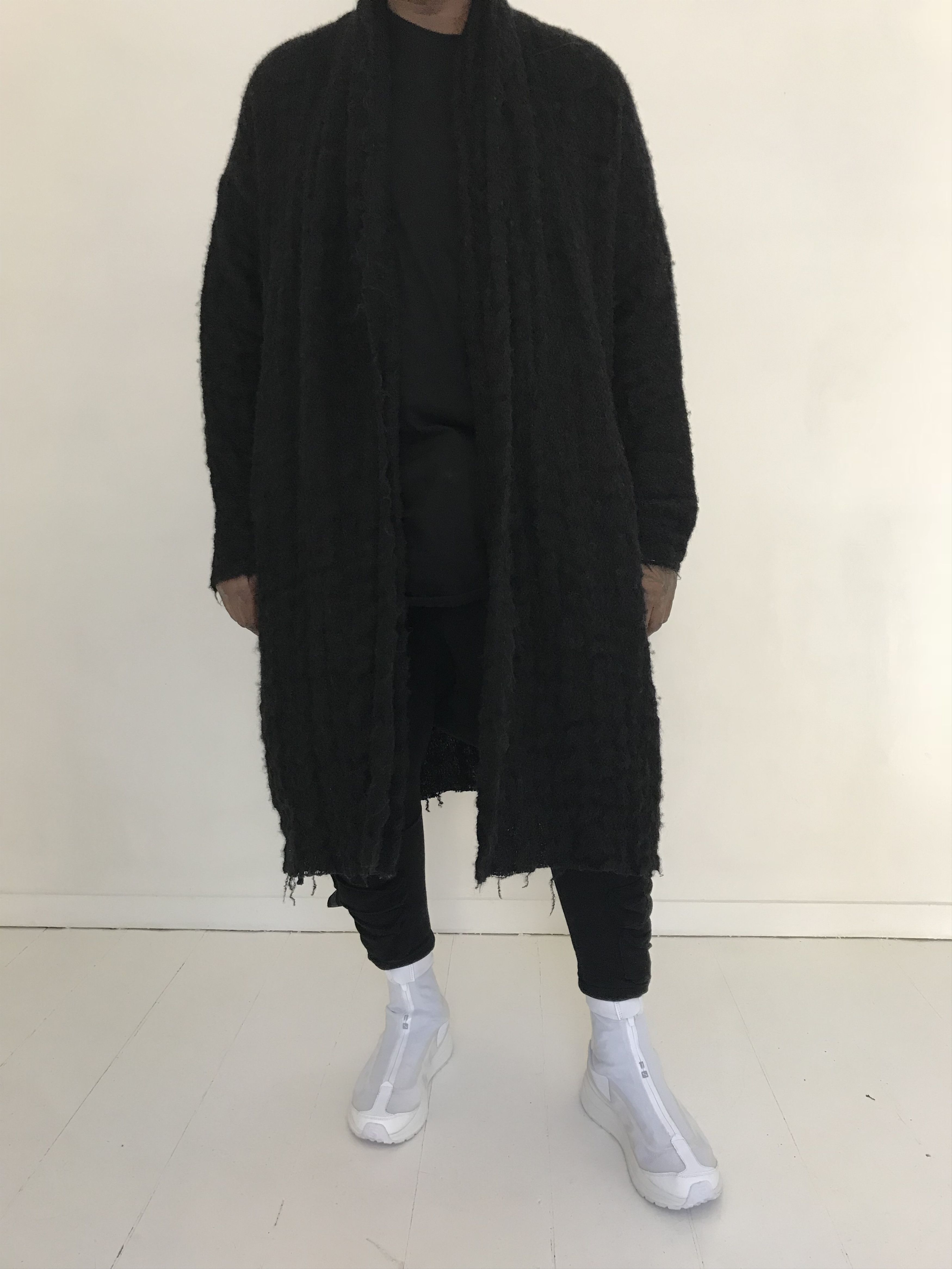Uma Wang Long Wrap Coat - Boiled Wool Coat/cardigan/wrap in Black, Men's (Size Large)Uma Wang - Boiled Wool Coat Size M (Almost Free Size) - 50/52/54 Shoulders: 52Cm (Drop Shoulder) Chest: (Free Size As Collar Is Included) 55Cm-65Cm, Very Hard To Measure Length: 117Cm Not Including Collar Very Similar To This: Uma Wang - Men's Black Textured Wrap Coat Details: Black Stretch Virgin Wool-Alpaca-Mohair BlUma Wang