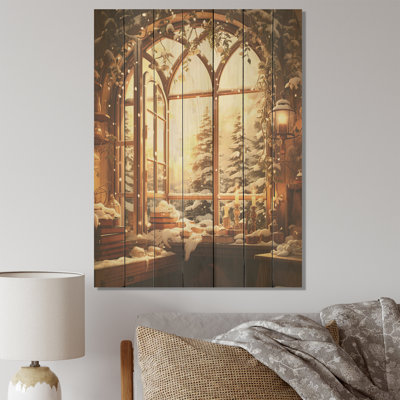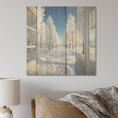 Christmas Winter Window View I - Winter Landscape On Wood PrintAdd rustic charm to your home with stunning Landscape & Nature wood wall panels. Handmade with Canadian natural pine wood planks, each piece features a Traditional prints with natural texture, wood's grain, and a rustic wood wall decor. Using UV Ink, this Traditional wood wall art features fine design and visible woodWinston Porter