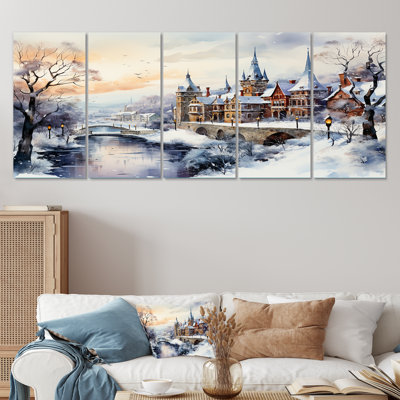 Wonderful Village Winter At Christmas II - Winter Landscape 5 Piece Wall ArtThis beautiful "Wonderful Village Winter At Christmas II" multipanel piece set of Canvas Art is printed using the highest quality fade-resistant ink on canvas. This Canvas print set of 4 is printed on premium quality canvas, using the finest quality inks which will not fade over time. Each giclee print is stretched tigRed Barrel Studio