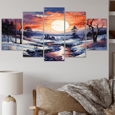 Purple River Winter Windows IV - Winter Landscape 5 Piece Wall Art Decor SetThis beautiful "Purple River Winter Windows IV" multipanel piece set of Canvas Art is printed using the highest quality fade-resistant ink on canvas. This Canvas print set of 4 is printed on premium quality canvas, using the finest quality inks which will not fade over time. Each giclee print is stretched tightly overRed Barrel Studio