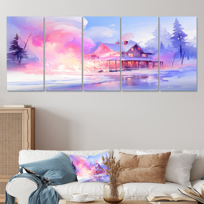 Pink And Purple Winter Cottage - Winter Landscape 5 Piece Wall Art SetThis beautiful "Pink And Purple Winter Cottage" multipanel piece set of Canvas Art is printed using the highest quality fade-resistant ink on canvas. This Canvas print set of 4 is printed on premium quality canvas, using the finest quality inks which will not fade over time. Each giclee print is stretched tightly overMillwood Pines