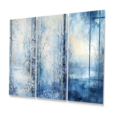 White And Blue Winter Forest Collage II - Winter Landscape Metal Wall Art Set Of 3Bring Traditional to your home with this Rectangular Metal Wall Art Set of 3 Piece . This "White And Blue Winter Forest Collage II" Metal Artwork makes it the focal point of any room or office. Lark Manor Size: 28" H x 36" WLark Manor